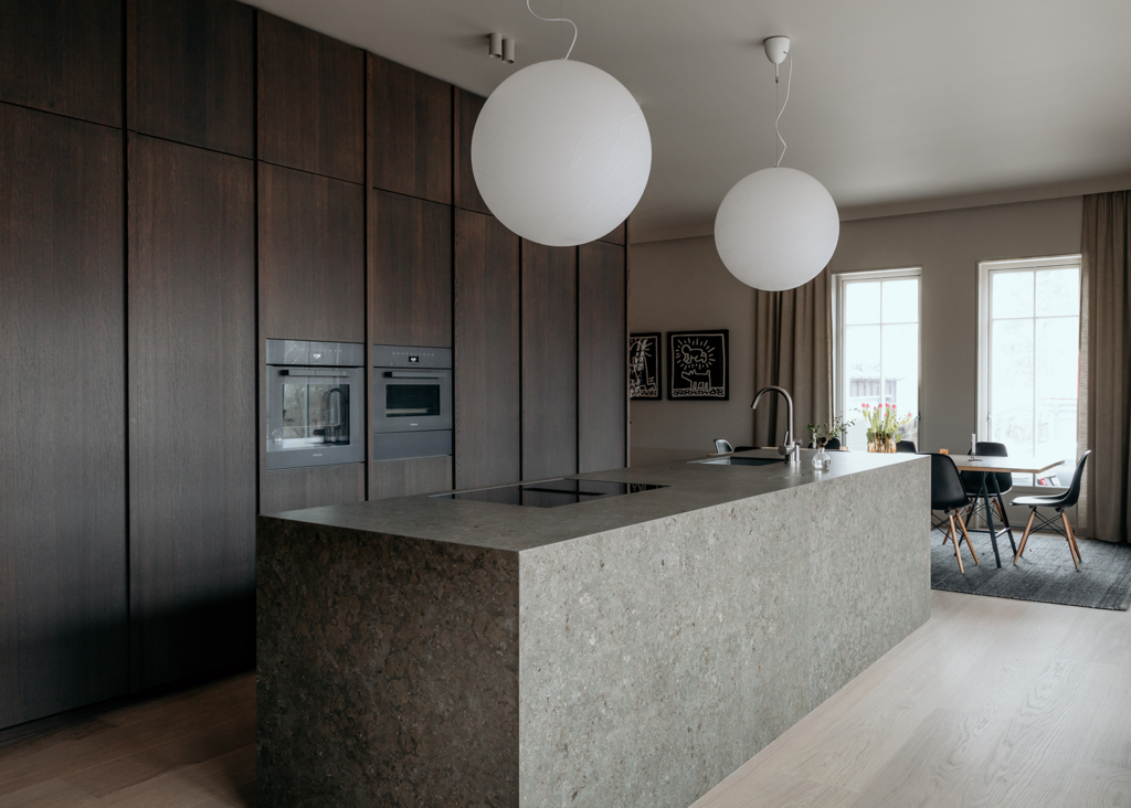 Bricmate’s countertops are available in three different finishes, Matt, Honed (semi-polished), Silk (satin matt) and Brushed, to suit various styles and the specific polishing of each stone type. Several of Bricmate’s countertops are also produced using 3D.Fit technology, an advanced method that gives the surface a lifelike texture, precisely matching the pattern. The result is a vibrant, three-dimensional feel where every detail can both be seen and felt.