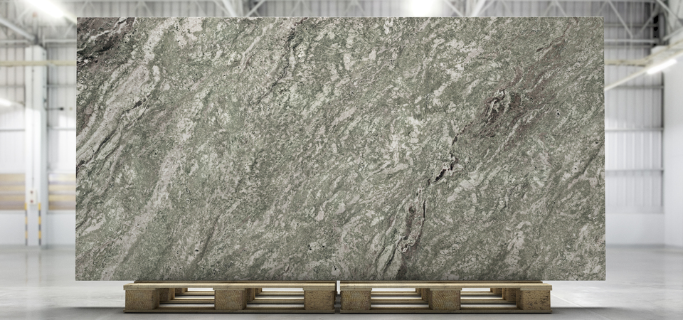 The pattern moves between dark green-black areas and softer tones of light green and grey, giving the surface a lively character with natural depth. The satin-matte Honed finish is polished to highlight the material’s texture and create a soft, elegant look with a pleasant tactile feel.
