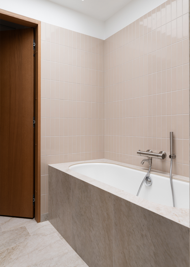 Att klä in badkar eller bubbelpool med 9 mm-plattor eller måttanpassade skivor i 12 mm tjocklek ger en exklusiv och sammanhållen känsla i badrum eller spaavdelning. Badkarets utseende kan matcha rummets övriga ytor genom att använda samma serie plattor rakt igenom, eller kontrastera med en annan serie för att bryta av.