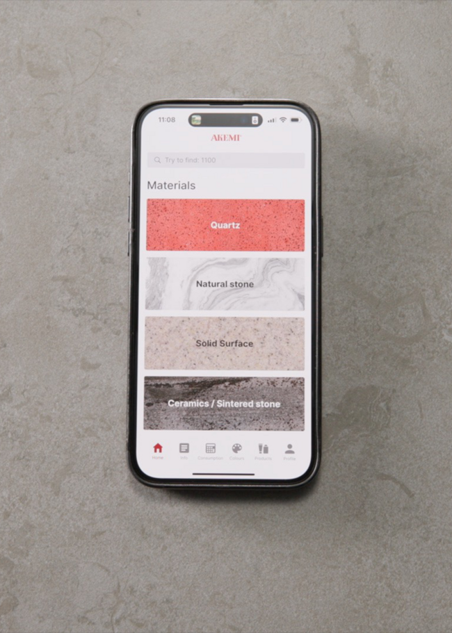 Vi rekommenderar två olika sätt att ta reda på vilken färg som passar bäst till den yta som ska repareras. Det första alternativet är att ladda ner appen AKEMI Colour Chart App till din mobiltelefon. Där finns Bricmates produkter inlagda och det går enkelt att hitta vilken/vilka färger på färgpigment som passar just din skiva eller platta bäst.