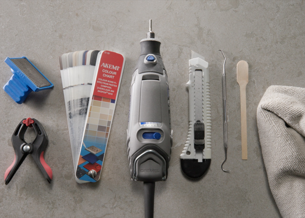 Trots att granitkeramik är ett av de mest slitstarka materialen när det kommer till beklädnader av golv och väggar inomhus och utomhus och som bänkskivor, så kan det fortfarande uppstå skador i materialet. Är olyckan framme, har du tappat något tungt och vasst på ytan eller stött i med något hårt så att ett märke uppkommit, går det enkelt att reparera. I denna guide går vi igenom hur du går till väga för att åtgärda eventuella bucklor i din Bricmate-yta, och vilka verktyg och material som krävs. Längst ner på sidan finns även en video som kan användas för extra stöd.