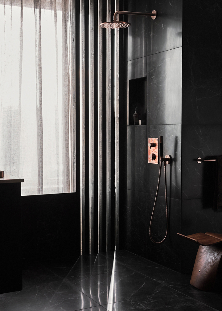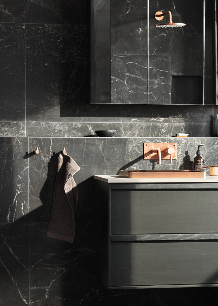 Inspirerad av den franska marmorn med samma namn, Noir St.Laurent, som karaktäriseras av sin intensiva svarta nyans med kraftiga vener i vitt och brunt.