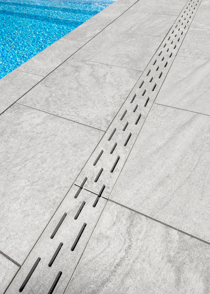 Z Quartzit Grey är en 20mm tjock granitkeramik anpassad för utomhusbruk. Inspirerad av skärgårdsklippors variation och skiftningar i struktur och mönster. Ytan är levande med mycket naturtrogen känsla.