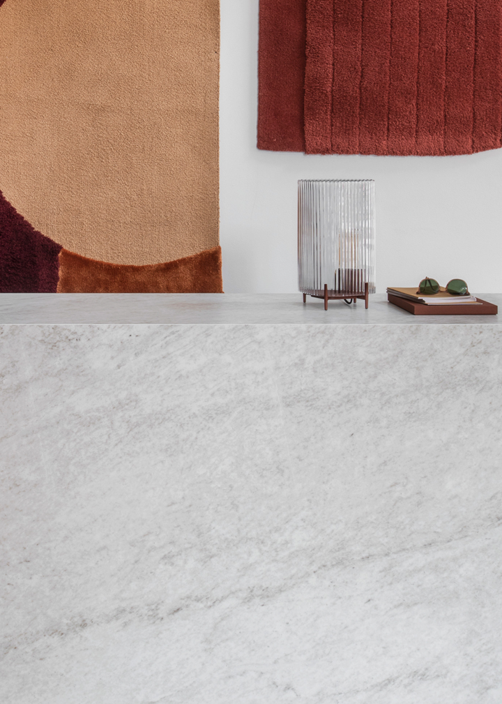 Bricmates keramiska bänkskiva Glanshammar Silk är en granitkeramik i storformat med silkeslen yta. Inspirerad av den ikoniska svenska Ekebergsmarmorn som bryts i Glanshammar utanför Örebro