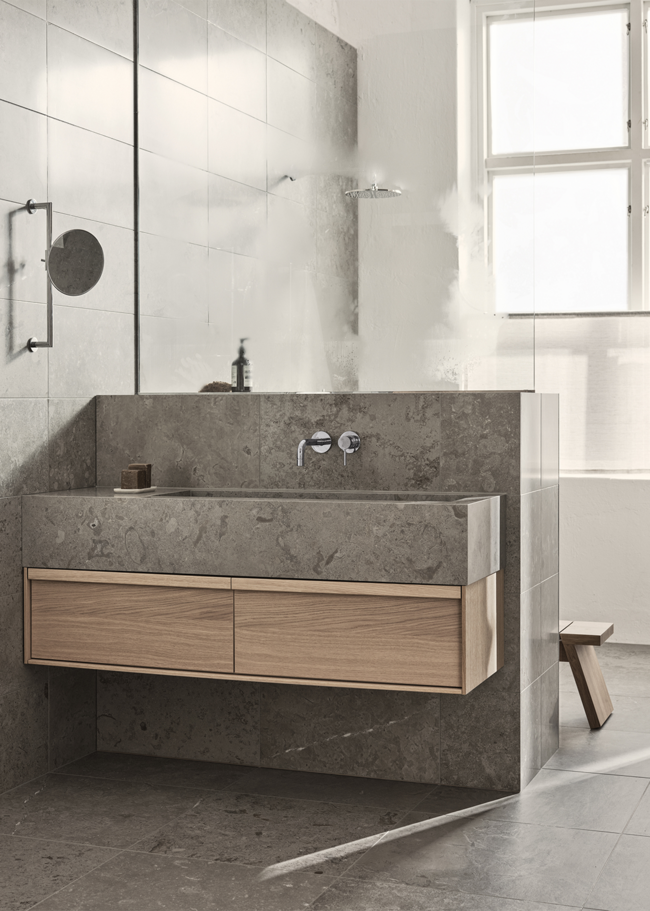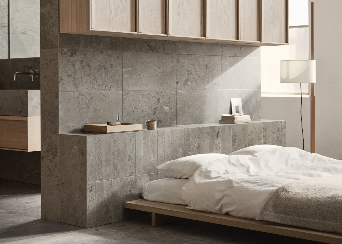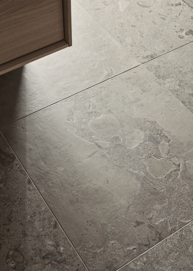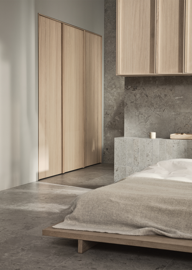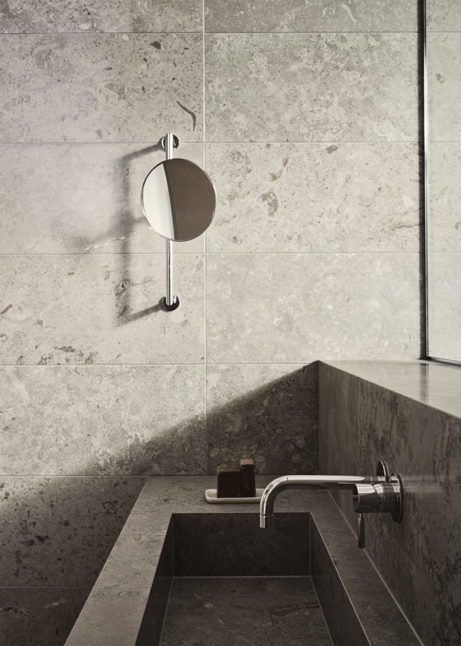 Limestone Select Classic skapar en lyxig och harmonisk atmosfär i detta retreat. Den naturinspirerade ytan bidrar till en lugn miljö där materialets karaktär får ta plats. Den polerade ytan Honed används här i storleken 07x30 på sänggaveln, samt 30x60 på väggarna, medan golvet är utfört i 60x60 i matt yta. Med sin rika och varierande mönsterbild skapar Limestone Select Classic ett mycket naturtroget kalkstensutseende, perfekt för hemmets alla ytor.