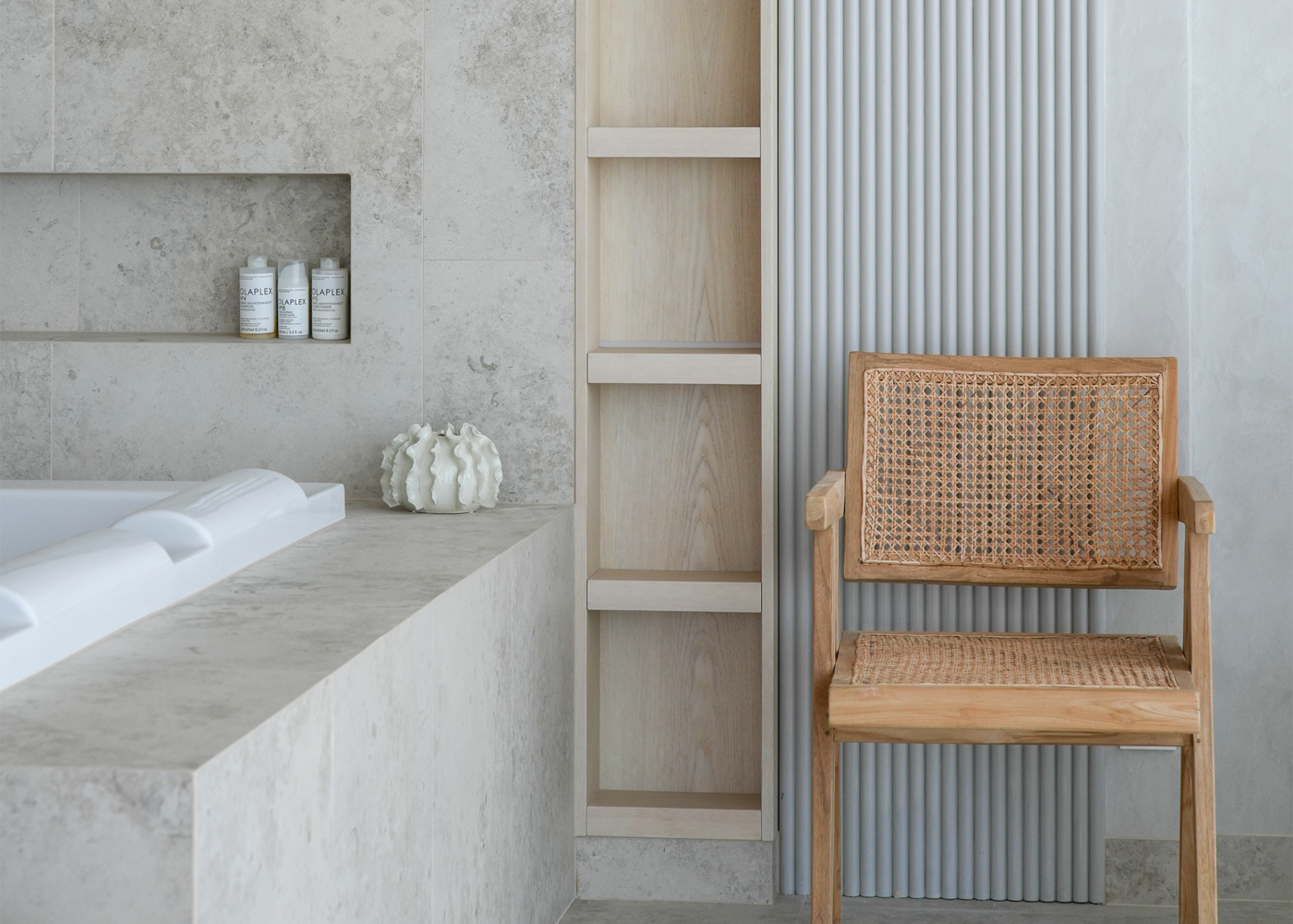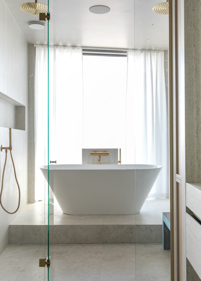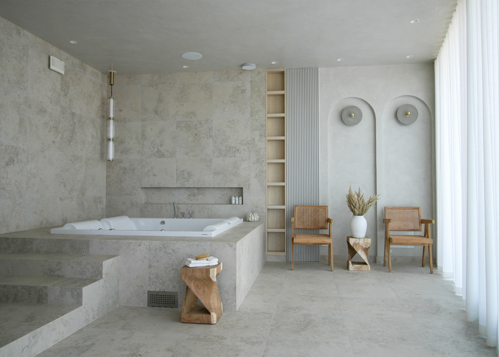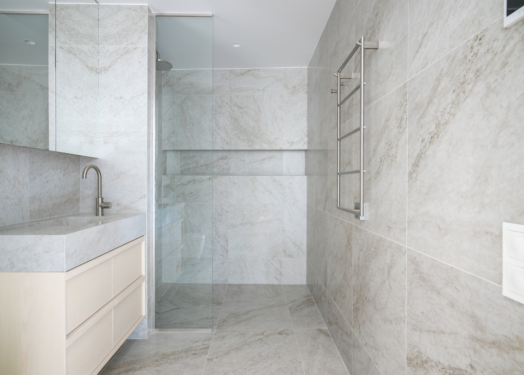 Stig in i denna enastående villa, där varje detalj är noggrant genomtänkt. Här har kunden valt Jura Select Ivory Matt som genomgående tema i relaxavdelningen, med bubbelpool, duch och bastu. Vi finner samma serie i två andra badrum, varav ett med ett badkar med vacker utsikt. I det tredje badrummet används Glanshammar Classic Honed, som pryder golv, väggar och tvättställ med sin tidlösa elegans.