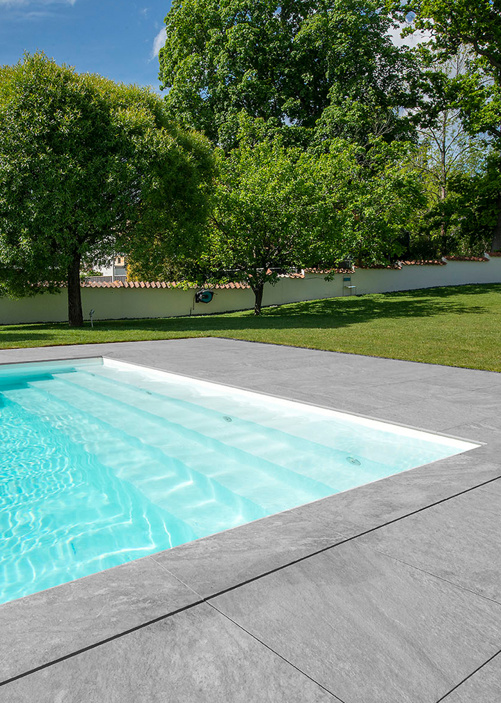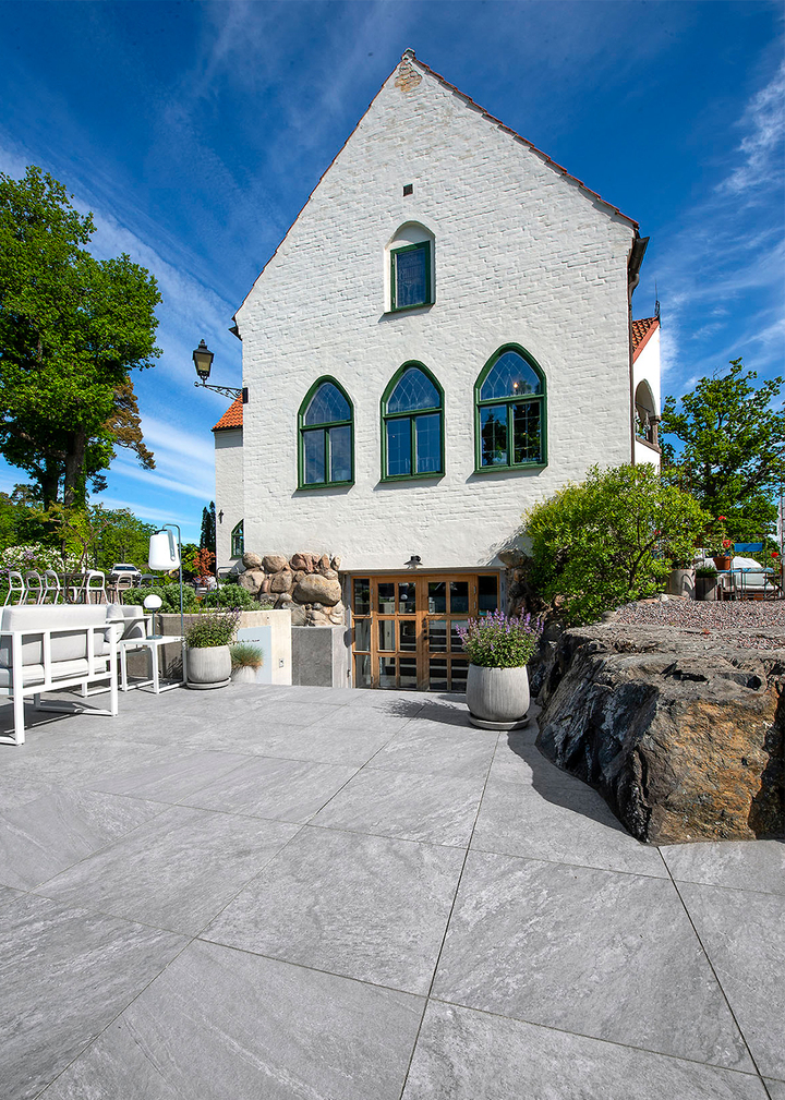 Z Quartzit Grey är en 20mm tjock granitkeramik anpassad för utomhusbruk. Inspirerad av skärgårdsklippors variation och skiftningar i struktur och mönster. Ytan är levande med mycket naturtrogen känsla.