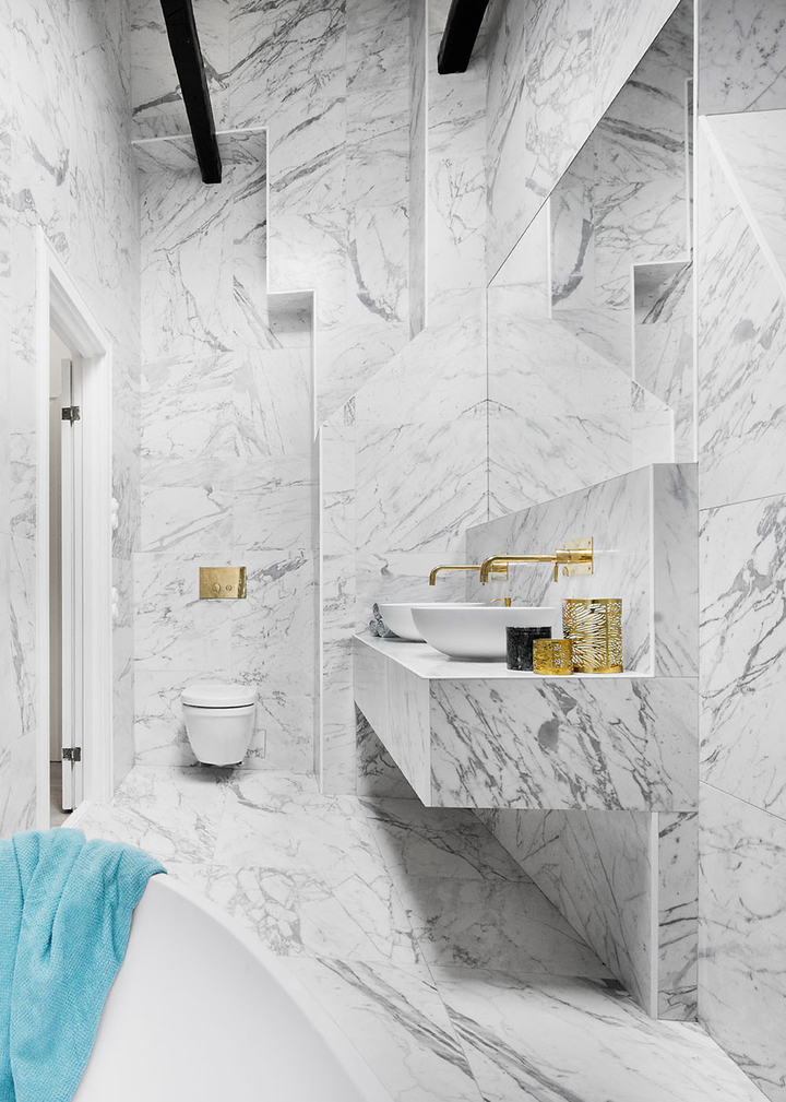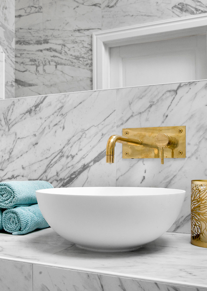 M Statuario Honed har en sammetslen yta och varierar likt marmor i mönster och nyans. Inspirerad av tre olika typer av Statuario för att få en så dekorativ och levande känsla som möjligt.