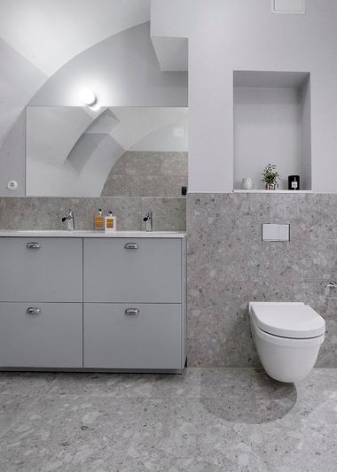 M Glanshammar Honed är en ljus slipad granitkeramik inspirerad av den ikoniska svenska Ekebergsmarmorn som bryts i Glanshammar utanför Örebro. Ekeberg är en elegant, klassisk och exklusiv sten som har kallats den svenska Carraramarmorn.